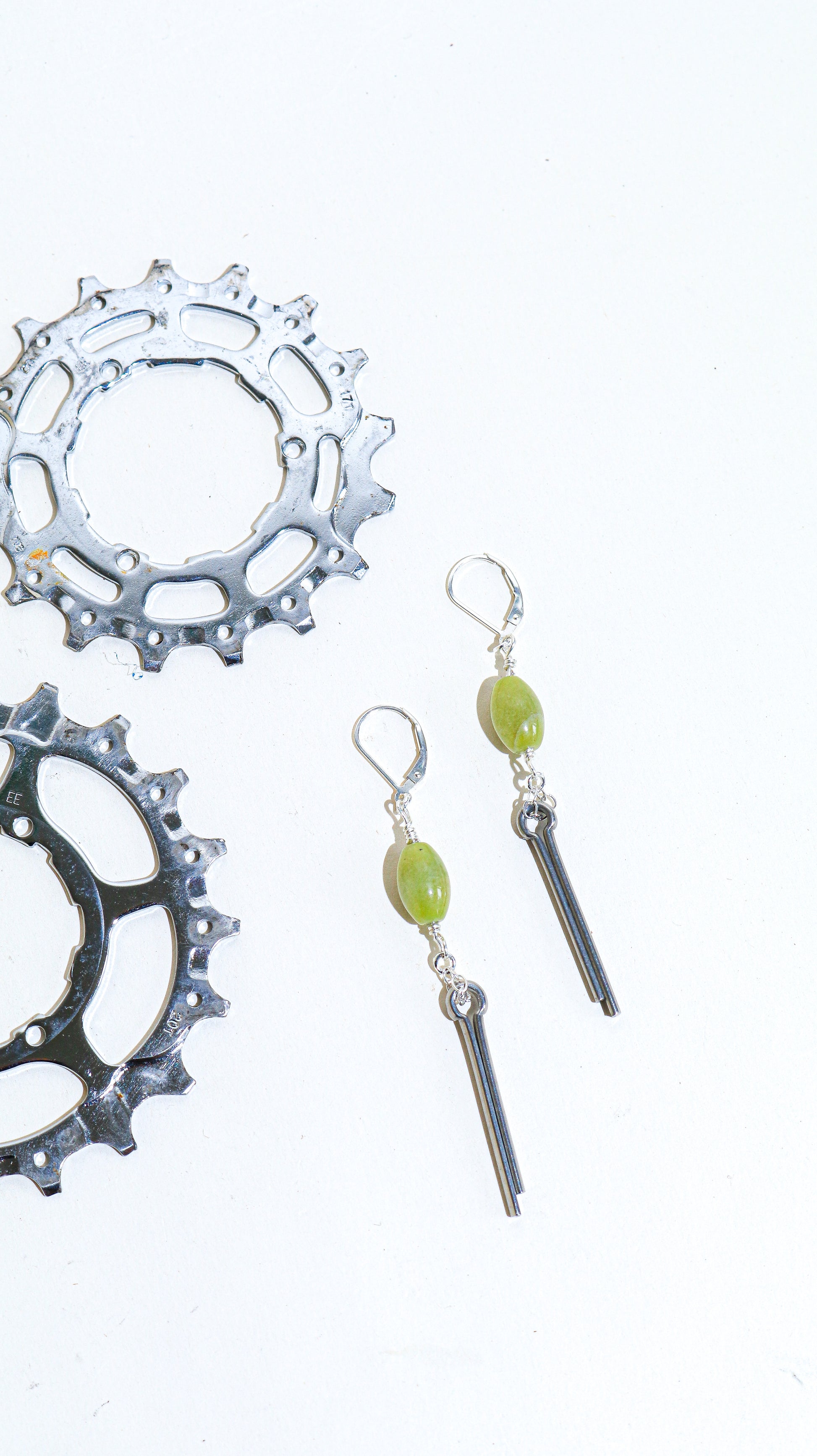 This jewelry is trash (it's made with upcycled bike parts).